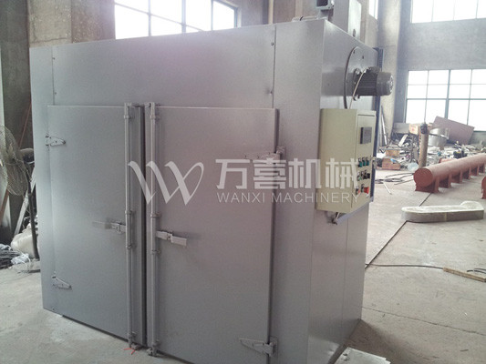 大部分熱風在箱內循環,熱效率高,節約能源。利用強制通風作用,箱內設有可調式分風板,物料干燥均勻,熱源可采用蒸汽、熱水、電、遠紅外,選擇廣泛。整機噪音小,運轉平衡。溫度自控,安裝維修方便。適用范圍廣,可干燥各種物料,是通用干燥設備。