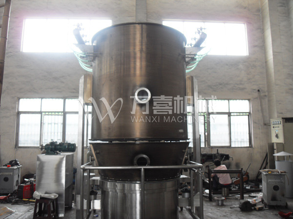 空氣經加熱凈化后,由引風機從下部導入,穿過料斗的孔網板。在工作室內,經攪拌和負壓作用形成流態化,水份快速蒸發后隨著排氣帶走,物料快速干燥。