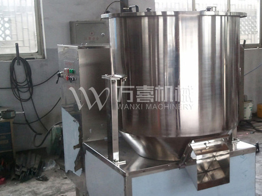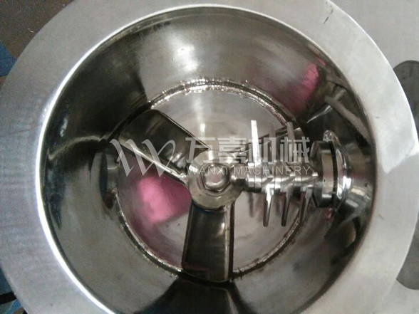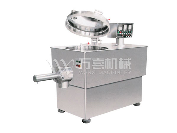 粉體物料與粘合劑在圓筒形容器中由底部混合漿充分混合成濕潤軟材,然后由側置的高速粉碎槳切割成均勻的濕顆粒。