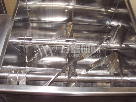 本機與物料接觸處均采用不銹鋼制造,槳葉與桶身間隙小,混合無死角,攪料軸兩端設有密封裝置,能防止物料外瀉。