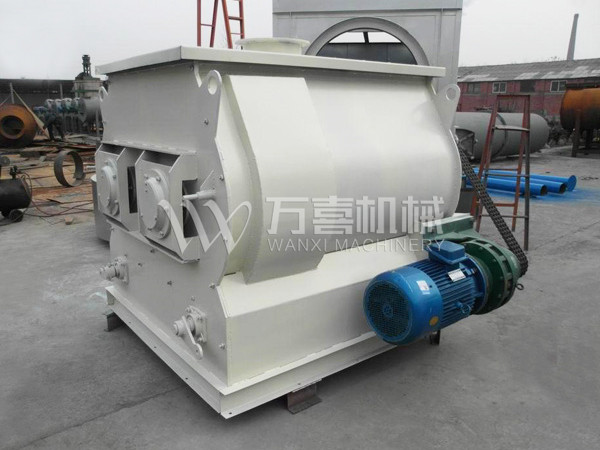本系列混合機以強烈、高效混合為特點、臥式筒體內兩根攪拌等速反向旋轉,上特殊布置的槳葉確保物料徑向、環向、軸向三向運動,形成復合循環,在極短的時間內達到均勻混合。