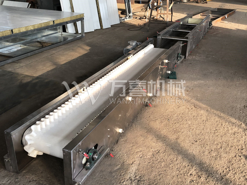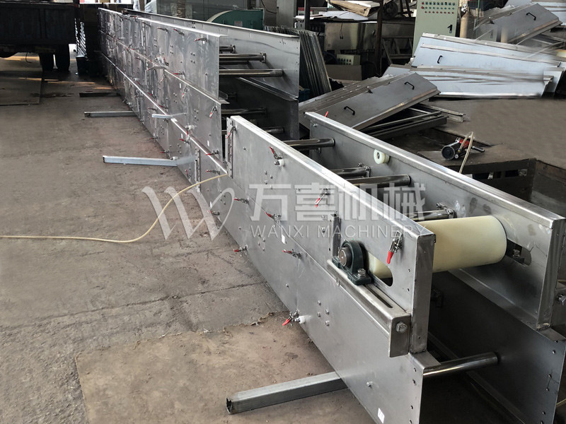 皮帶輸送機主要由機架、輸送皮帶、皮帶輥筒、張緊裝置、傳動裝置等組成。機身采用優質鋼板連接而成,由前后支腿的高低差形成機架,平面呈一定角度傾斜。機架上裝有皮帶輥筒、托輥等,用于帶動和支承輸送皮帶。